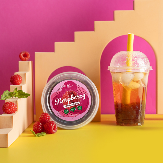 UitverkochtFramboos Fruitparels - 450 g Bekers (x12)