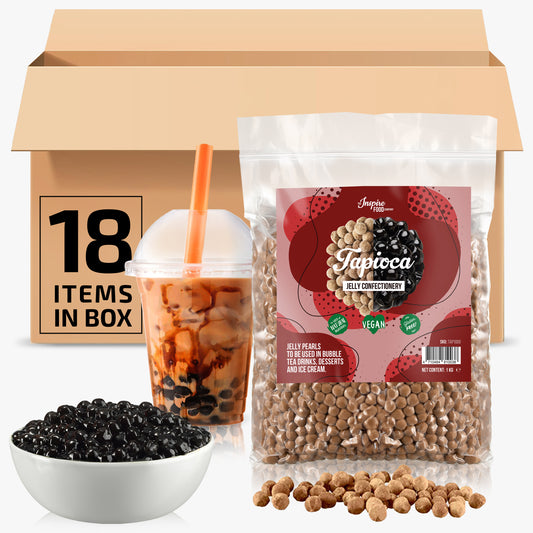 Tapiocaparels zijn essentieel voor je bubble tea-drankje en staan bekend om hun textuur. Onze tapiocaparels hebben een diameter van 8,5 millimeter, wat zorgt voor een prettige drinkervaring, en omdat ze iets kleiner zijn, hebben ze minder bereidingstijd nodig!